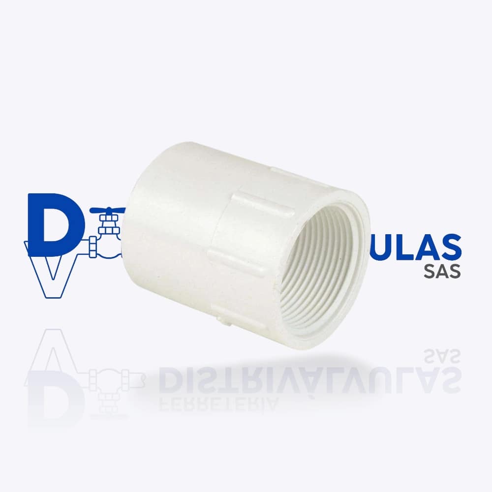 Se trata de un accesorio fabricado en PVC con un extremo liso para ser unido a una tubería o a otro accesorio y el otro extremo con una rosca interna (hembra).