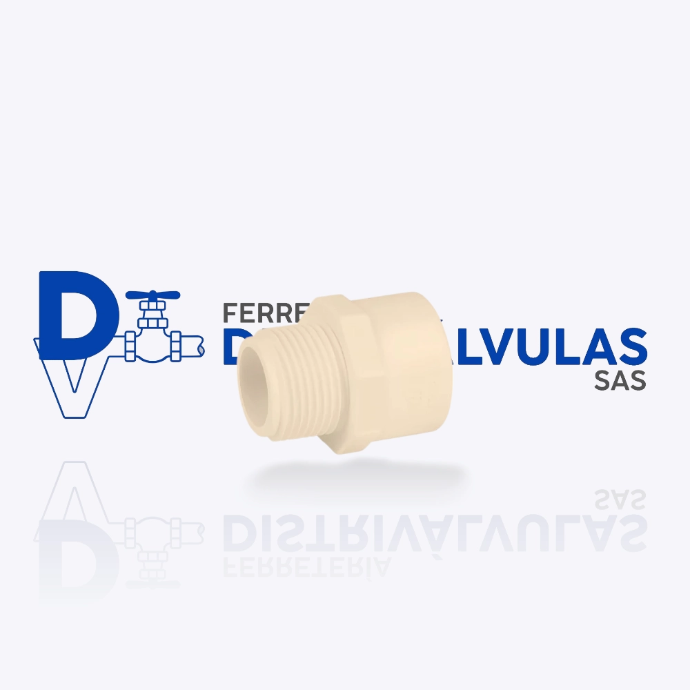 Se trata de un accesorio fabricado en CPVC con un extremo liso para ser unido a una tubería o a otro accesorio y el otro extremo con una rosca externa (macho).