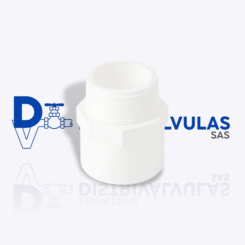 Se trata de un accesorio fabricado en PVC con un extremo liso para ser unido a una tubería o a otro accesorio y el otro extremo con una rosca externa (macho).